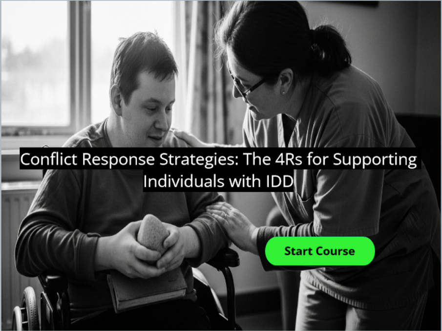 A practical, skills-focused lesson designed for Direct Support Professionals and caregivers in IDD environments. This project introduces the 4Rs Framework—Recognize, Reflect, Respond, Restore—to help staff navigate conflict with clarity, calm, and confidence. Created in partnership with IntellectAbility LLC, the course strengthens caregivers’ ability to handle some of the most challenging moments of their work.