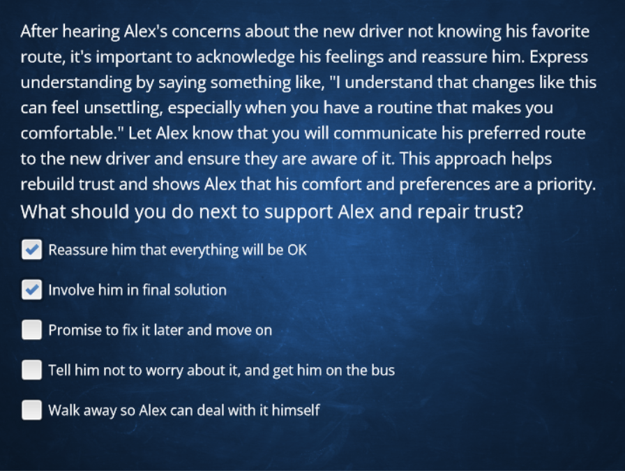 The course equipped caregivers with a clear, shared method for navigating tense or emotionally charged moments. By giving teams common language and predictable steps, the 4Rs Framework improved communication, increased confidence, and reduced unnecessary escalation. Organizations reported more consistent support across staff, stronger relationships with individuals receiving services, and a noticeable improvement in overall stability within care environments.